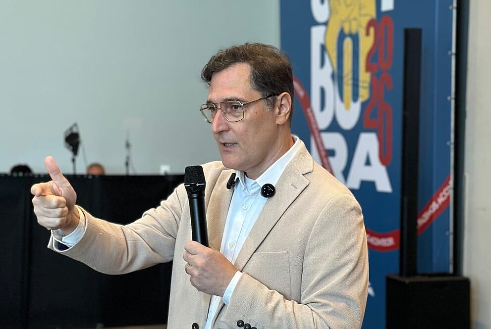 O especialista e professor de Relações Internacionais da Faculdade Presbiteriana Mackenzie (FPM) Rio, Leo Braga, participou, na quarta-feira, 18 de março, do evento Simbora 2026, realizado pela empresa Interfreight Logistics, no Centro de Convenções do Hotel Prodigy, no Centro do Rio de Janeiro.