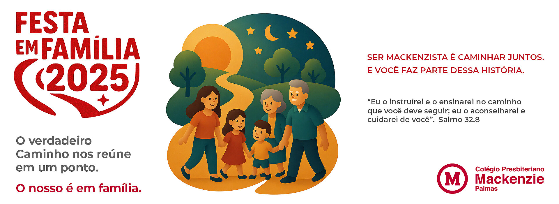 No dia 07 de junho, sábado, o Colégio Presbiteriano Mackenzie (CPM) Palmas realizará a Festa em Família, das 16h às 22h, com o tema “Ser Mackenzista: expressão de tradição, crença, qualidade e inovação”, com apresentações artísticas e culturais, brincadeiras e uma saborosa culinária.