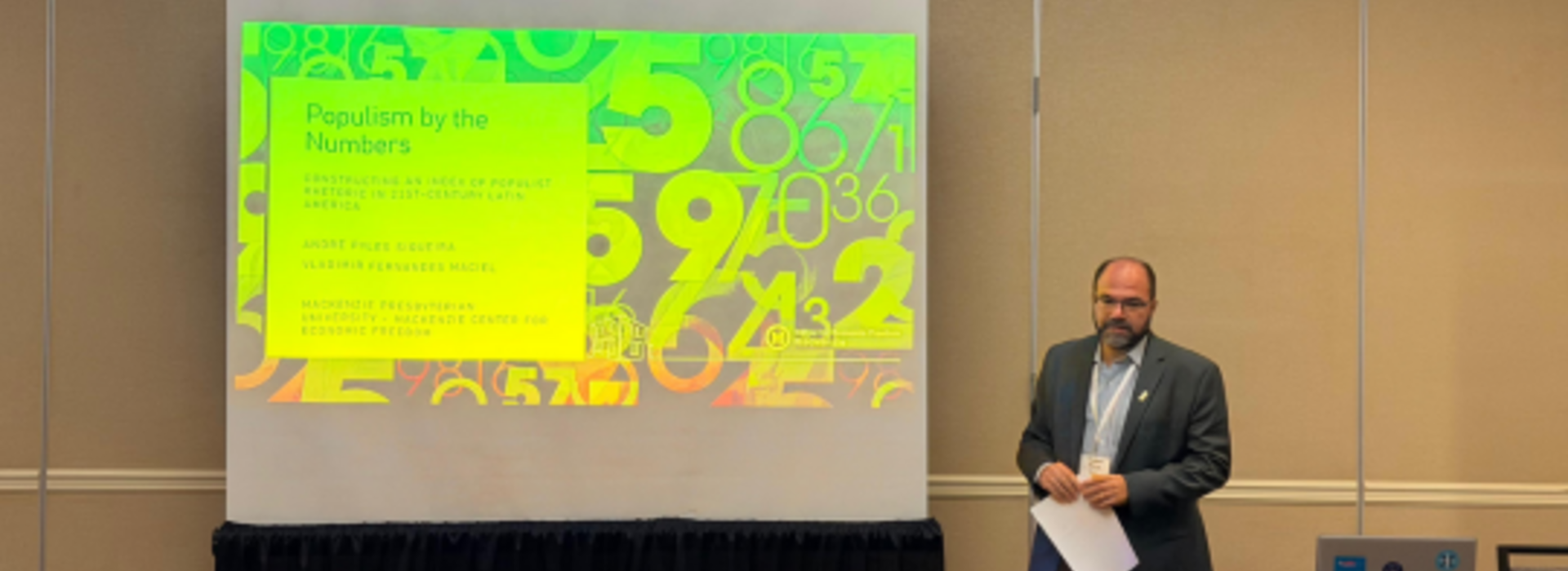 No dia 13 de março, o Prof. Vladimir Maciel, coordenador do Mackliber, apresentou, em conferência internacional, uma pesquisa desenvolvida no âmbito do Centro Mackenzie de Liberdade Econômica sobre a construção de um índice de retórica populista na América Latina.