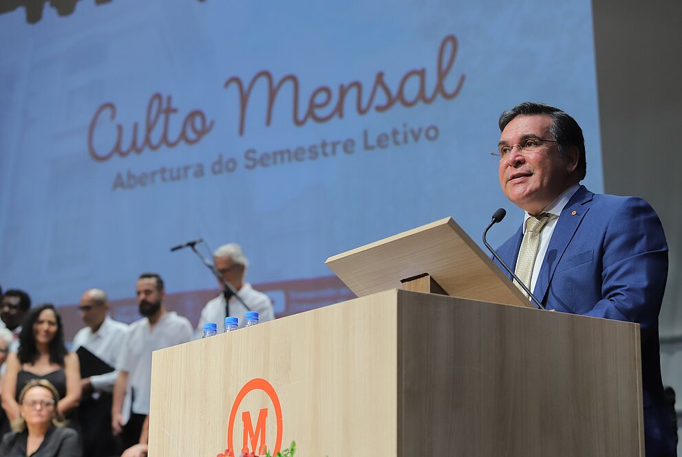 Na manhã desta quarta-feira, 26 de fevereiro, a Chancelaria Mackenzie realizou o Culto Mensal especial de Abertura do Semestre Letivo, conduzido pelo reverendo Robinson Grangeiro, chanceler da Instituição. O encontro reuniu o presidente do Instituto Presbiteriano Mackenzie (IPM), bem como demais diretores executivos; o reitor Marco Tullio de Castro Vasconcelos, diretores e professores de diversas unidades acadêmicas da Universidade Presbiteriana Mackenzie (UPM); além de professores e direção do Colégio Presbiteriano Mackenzie (CPM) e demais colaboradores. O Coral Mackenzie de Música Sacra abrilhantou a cerimônia, que também foi transmitida ao vivo pelo YouTube da Chancelaria Mackenzie.