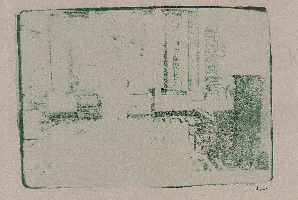 A exposição também materializa as reflexões da pesquisa da artista sobre poéticas visuais e deslocamentos. “Busquei conscientemente uma técnica que ao mesmo tempo fosse fotográfica e retratasse o local, mas que não tivesse a precisão da fotografia. Queria essa coisa meio suja, meio manchada, com pouca nitidez, fui procurando um caminho digital e não gostei do resultado, e aí resolvi tentar a gravura. Foi um caminho de experimentação, de tentativa e erro, até que descobri essa técnica”, detalha Carolina Vigna.