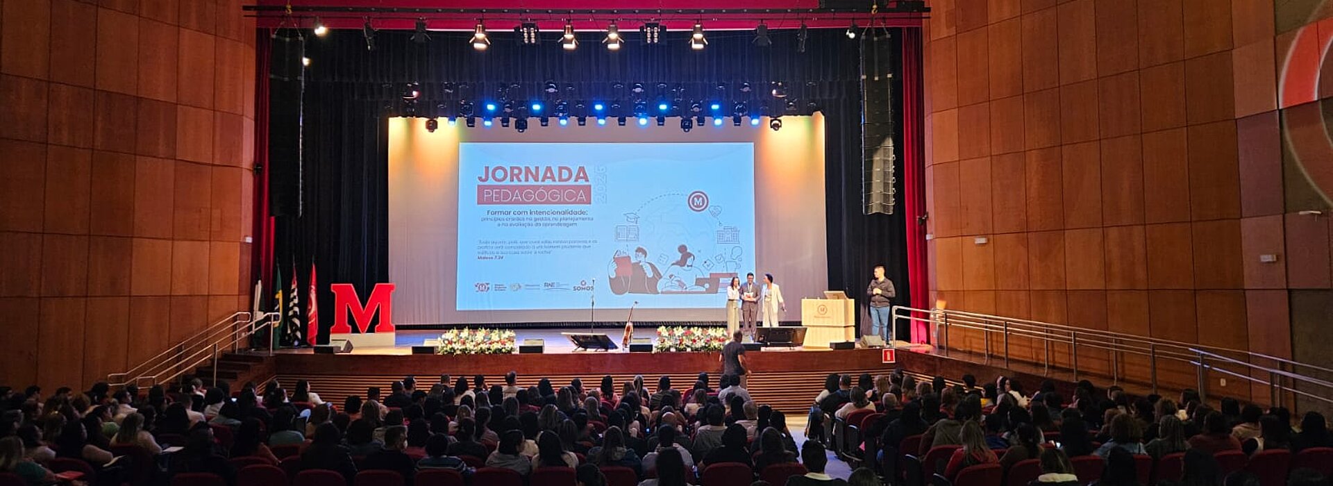 No sábado, 24 de janeiro, o Sistema Mackenzie de Ensino (SME), do Instituto Presbiteriano Mackenzie (IPM), realizou a sua Jornada Pedagógica 2026, evento que reuniu escolas parceiras de todo o Brasil no auditório Ruy Barbosa, campus Higienópolis, para um dia de aperfeiçoamento das práticas pedagógicas e apresentação das novidades dos materiais do SME. O tema deste ano foi Formar com Intencionalidade: Princípios Cristãos na Gestão, no Planejamento e na Avaliação da Aprendizagem.