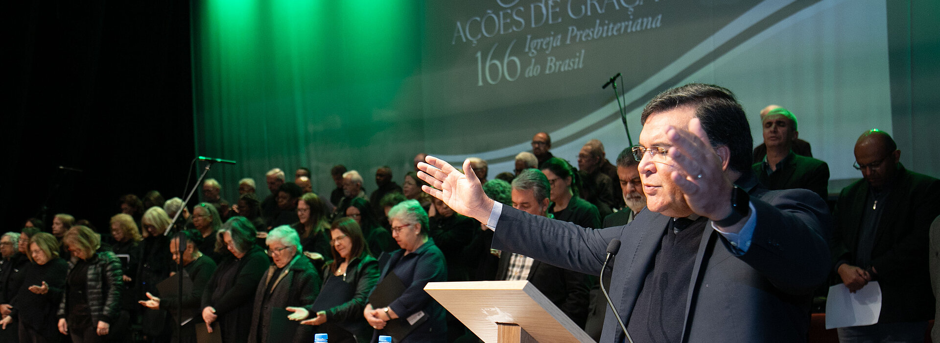 Na manhã de terça-feira, 12 de agosto, a Universidade Presbiteriana Mackenzie (UPM) sediou o Culto em Ação de Graças em comemoração aos 166 anos da Igreja Presbiteriana do Brasil (IPB). A celebração contou com a pregação do chanceler do Mackenzie, reverendo Robinson Grangeiro, e reuniu membros da Diretoria Executiva (Direx) do Instituto Presbiteriano Mackenzie (IPM), o reitor da Universidade Presbiteriana Mackenzie (UPM), professor Marco Tullio de Castro Vasconcelos, integrantes do Conselho Deliberativo do IPM e representantes da IPB de diversos sínodos de várias cidades.