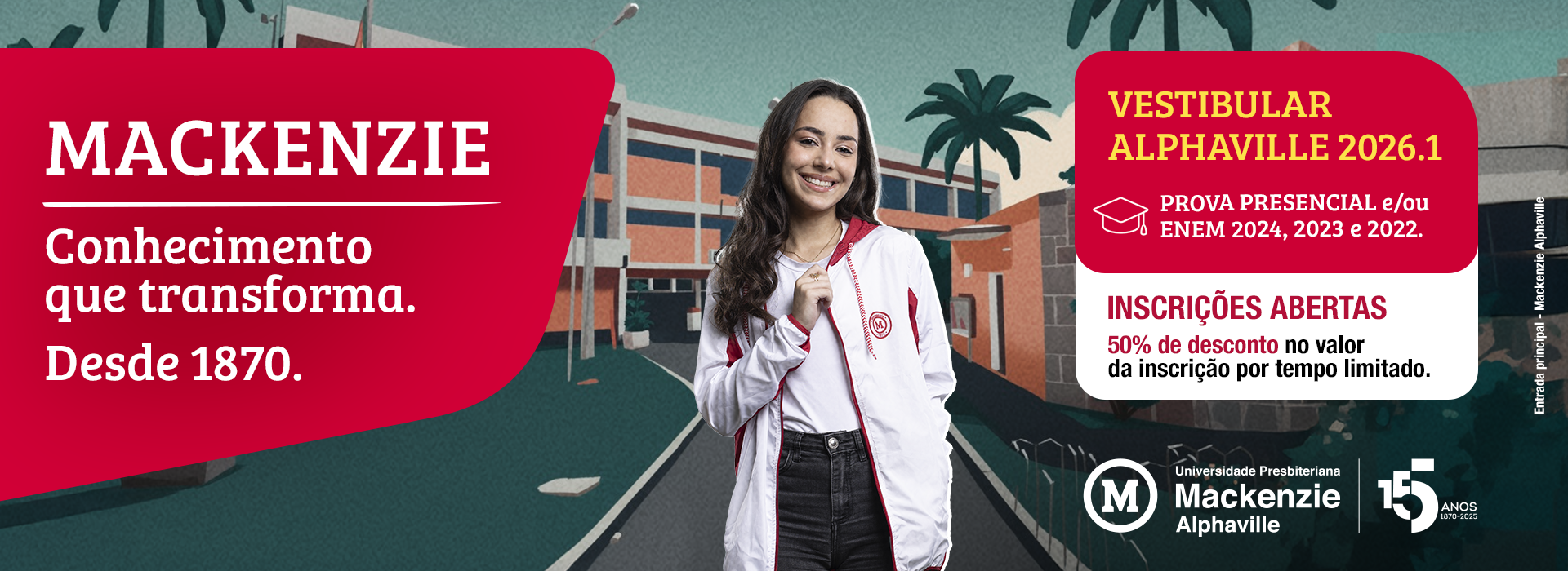 A Universidade Presbiteriana Mackenzie (UPM) está com as inscrições para o Vestibular 2026.1, para o campus Alphaville.