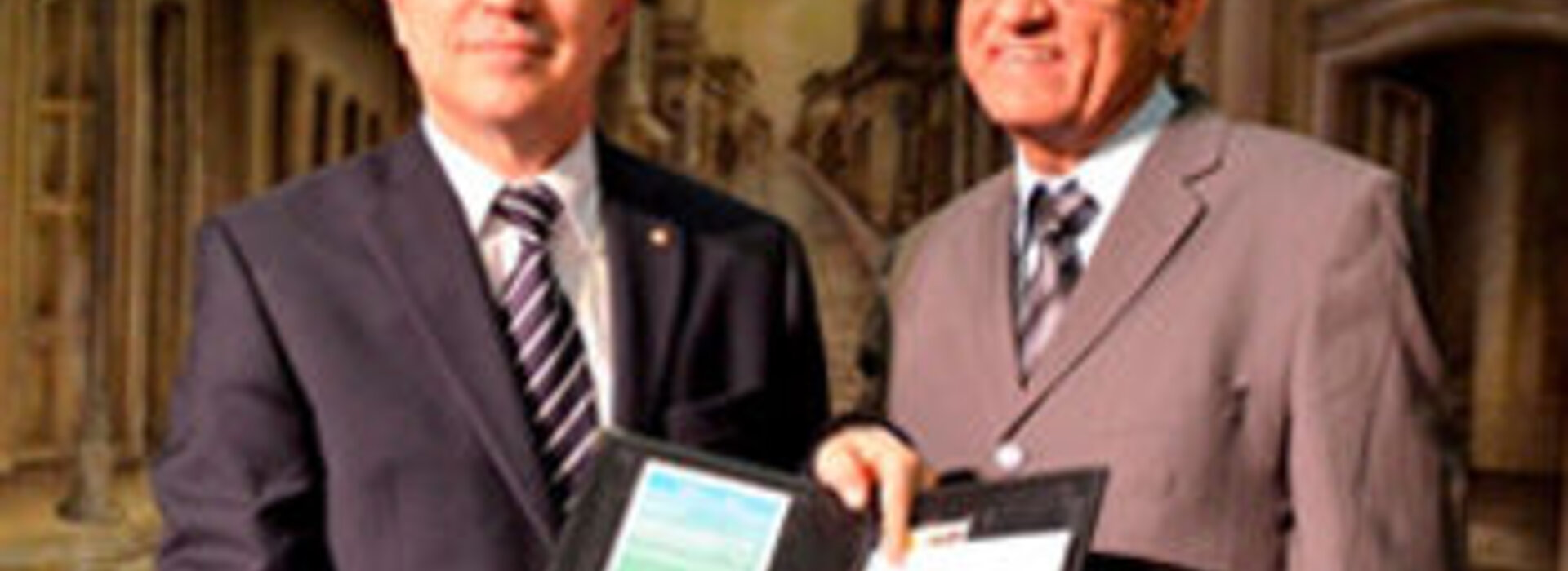 Na foto o presidente do IPM, Maurício Melo de Meneses (esq.) e diretor regional do Correios, Antonio Tomás.