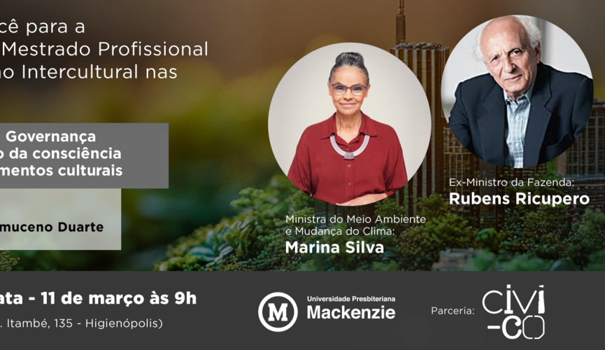 No dia 11 de março, a Universidade Presbiteriana Mackenzie (UPM) receberá a ministra do Meio Ambiente e Mudança do Clima, Marina Silva, e o ex-ministro da Fazenda, Rubens Ricupero, para a Aula Magna do Mestrado Profissional em Comunicação Intercultural nas Organizações. O evento será realizado no auditório Ruy Barbosa, campus Higienópolis, às 9h, e para participar é necessário realizar inscrição gratuita, basta acessar aqui.