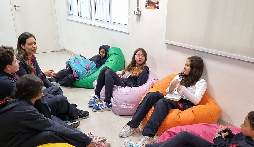 Buscando transformar a leitura em uma atividade prazerosa e significativa, valorizando o protagonismo dos alunos e promovendo interações entre os participantes, os estudantes tiveram a oportunidade de compartilhar hobbies e interesses pessoais, contribuindo para um ambiente acolhedor e descontraído. A dinâmica acontecerá quinzenalmente, sempre como um espaço de diálogo, escuta e construção coletiva.
