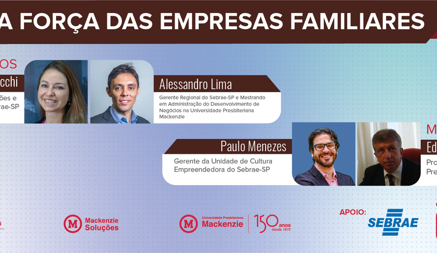 O Centro de Ciências Sociais e Aplicadas (CCSA) da Universidade Presbiteriana Mackenzie (UPM), em parceria com o Mackenzie Soluções, área de negócios do Instituto Presbiteriano Mackenzie (IPM), e com o Serviço Brasileiro de Apoio às Micro e Pequenas Empresas São Paulo (Sebrae-SP), realizará, na próxima quarta-feira, 20 de outubro, às 19h, o webinar com o tema A Força das Empresas Familiares. O encontro on-line é gratuito e requer inscrições prévias.