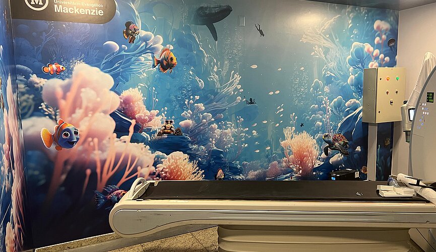 O Hospital Universitário Evangélico Mackenzie (HUEM) inaugurou mais uma sala temática de tomografia computadorizada, desta vez inspirada no fundo do mar. A iniciativa faz parte do trabalho contínuo do Serviço de Apoio Diagnóstico e Terapêutico (SADT) para humanizar o ambiente hospitalar e reduzir o estresse dos pacientes durante os exames.