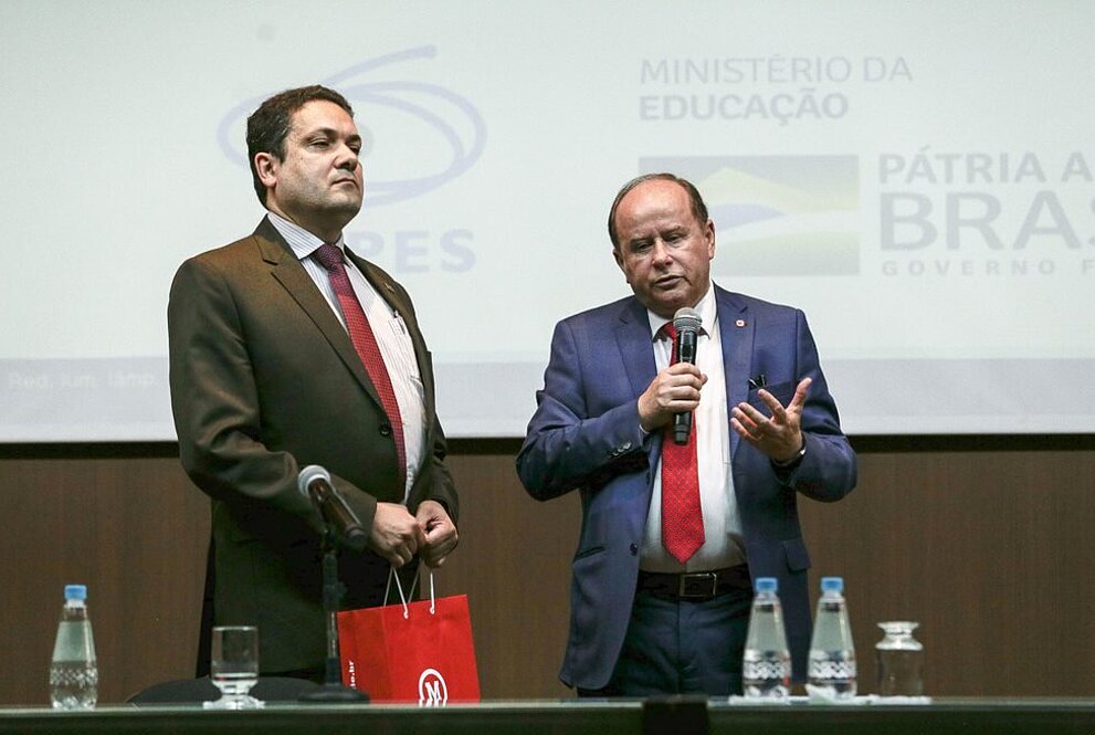 Na última quarta-feira, 14 de agosto, ocorreu a Aula Magna para alunos da Pós-Graduação Stricto Sensu - 2º semestre de 2019, que teve como tema Ações de Futuro da Coordenação de Aperfeiçoamento de Pessoal de Nível Superior (CAPES) para Evolução da Pós-Graduação Brasileira. A mesa foi composta pelo palestrante Anderson Correia, presidente da CAPES, e Paulo Batista Lopes, pró-reitor de Pesquisa e Pós-Graduação Stricto Sensu da Universidade Presbiteriana Mackenzie (UPM), que moderou os trabalhos.