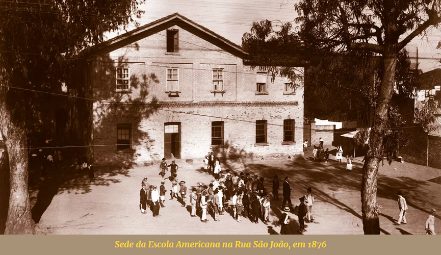 Na foto da capa: sede da Escola Americana ainda na São João, em 1876.
