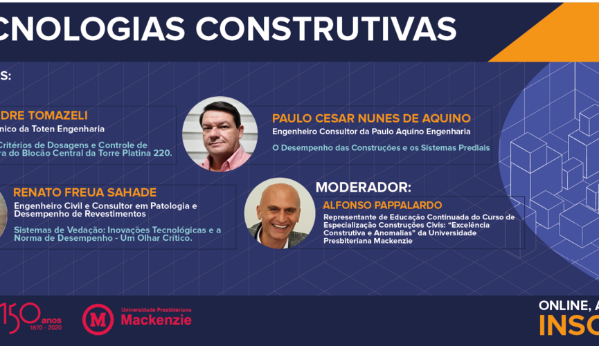 A Escola de Engenharia (EE) da Universidade Presbiteriana Mackenzie (UPM) em parceria com o Mackenzie Soluções, área de negócios do Instituto Presbiteriano Mackenzie (IPM), realizará na próxima terça-feira, 08 de junho às 19h, o Webinar Tecnologias Construtivas. O encontro on-line é gratuito e está com inscrições abertas.