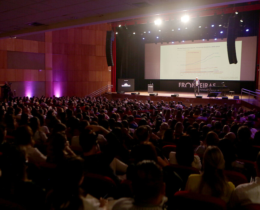 Na última segunda-feira, 19 de maio, o auditório Ruy Barbosa, no campus Higienópolis da Universidade Presbiteriana Mackenzie (UPM) foi palco da primeira palestra da temporada 2025 do Fronteiras de Pensamento, que contou com arguição do norte-americano Jonathan Haidt, considerado um dos maiores pesquisadores sobre comportamento humano e redes sociais.
