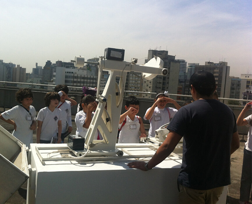 Na visita, as crianças conheceram o Celóstato (jogo de espelhos) que acoplado ao telescópio, projeta em tempo real as atividades do sol. O CRAAM é um centro de pesquisas operado mediante convênio entre o Mackenzie e o MCT/INPE - Instituto Nacional de Pesquisas Espaciais