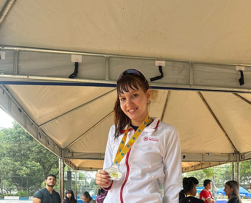 Aluna do curso de Direito da Faculdade Presbiteriana Mackenzie Rio e sul-mato-grossense, Bruna Brandt brilhou nas areias apesar da intensa rotina de estudos. Com uma trajetória marcada por dedicação e disciplina, adquirida pela prática esportiva, a jovem atleta concilia os treinos com a graduação e, às vésperas das provas finais do primeiro semestre de 2025, levou o material para estudar durante a viagem, para que os jogos não interferissem no resultado acadêmico.