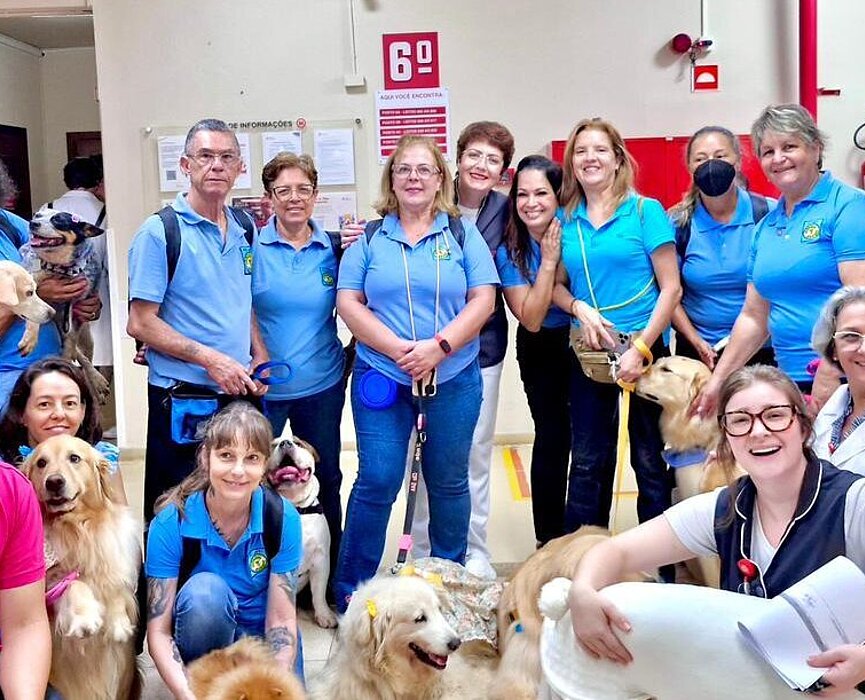 Os pacientes do serviço de cuidados paliativos adulto do Hospital Universitário Evangélico Mackenzie (HUEM) receberam, na última quinta-feira, 26 de março, uma visita especial. Cães do projeto “Amigo Bicho” e seus tutores estiveram no local, levando um pouco de alegria e descontração aos internados. Durante cerca de uma hora, os “visitantes” passaram pelos quartos e puderam interagir com os pacientes, levando sorrisos e momentos de acolhimento.
