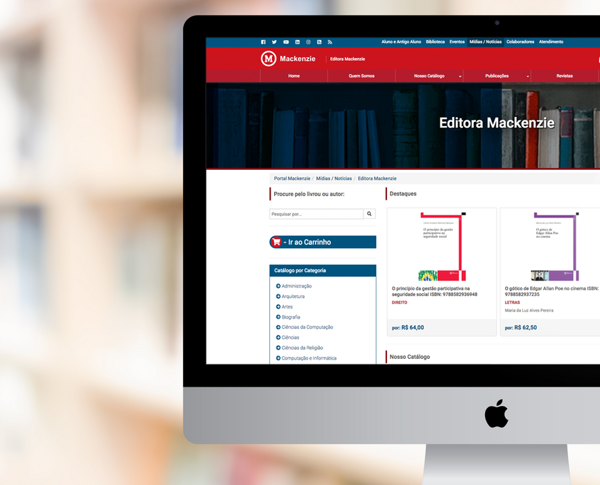 A Editora Mackenzie está com site renovado com plataforma de e-commerce (venda de livros online) ágil e intuitiva. Atualmente, são cerca de 150 livros disponíveis para compra em seu catálogo com entrega para todo o Brasil e até mesmo fora do país. Além disso, novas obras serão disponibilizadas em breve na livraria virtual.