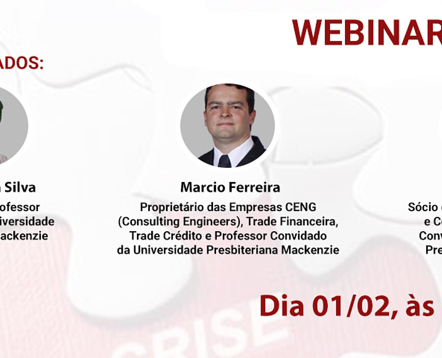 Na próxima segunda-feira, 1º de fevereiro, o Centro de Ciências Sociais e Aplicadas (CCSA), da Universidade Presbiteriana Mackenzie (UPM), realizará webinar que terá como tema A importância da controladoria na gestão do negócio em tempos de crise. O encontro será on-line, às 19h. As inscrições podem ser feitas no site.