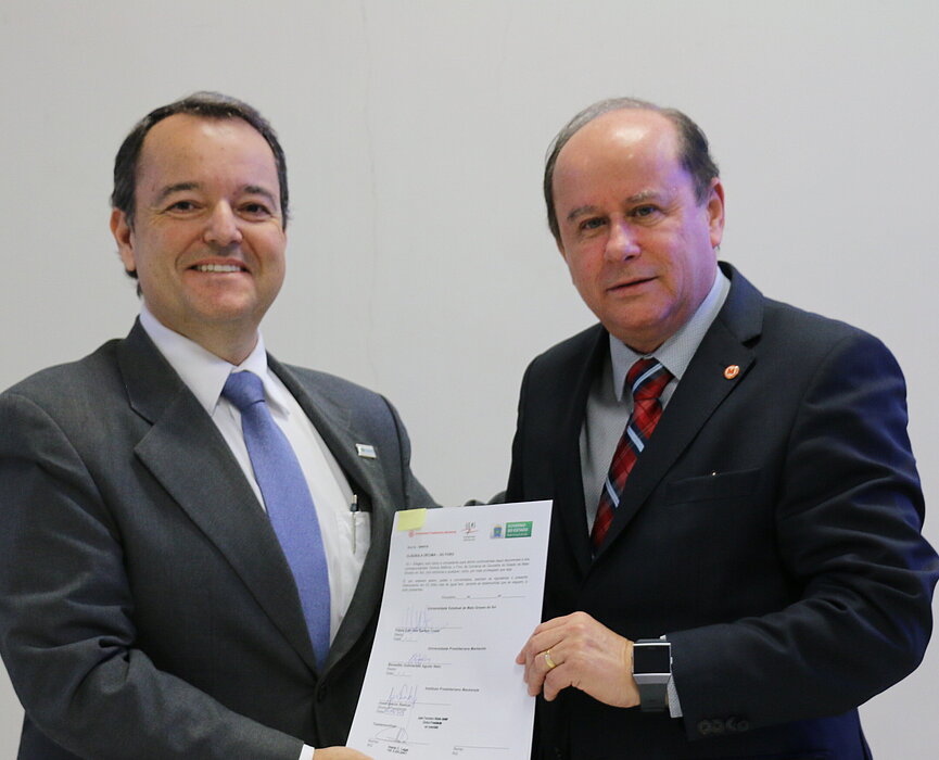 Na segunda-feira, dia 10 de junho, o reitor da Universidade Presbiteriana Mackenzie (UPM), Benedito Guimarães Aguiar Neto, esteve na sede da Universidade Estadual de Mato Grosso do Sul (UEMS), em Dourados, para assinar um convênio para intercâmbio e cooperação técnica, científica e cultural entre as duas instituições.