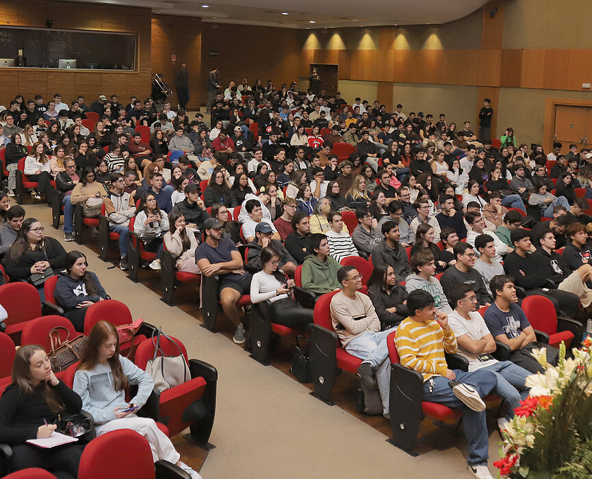 Na manhã desta quarta-feira, 14 de maio, o Mackenzie Business Week 2025 recebeu a palestra da marca Lindt, referência mundial em chocolates premium. O evento, promovido pelo Centro de Ciências Sociais e Aplicadas (CCSA) da Universidade Presbiteriana Mackenzie (UPM), em parceria com a Empresa Júnior Mackenzie Consultoria, contou com a participação do CEO da Lindt no Brasil, Walter Angst, e da diretora de marketing da marca, Renata Sato.