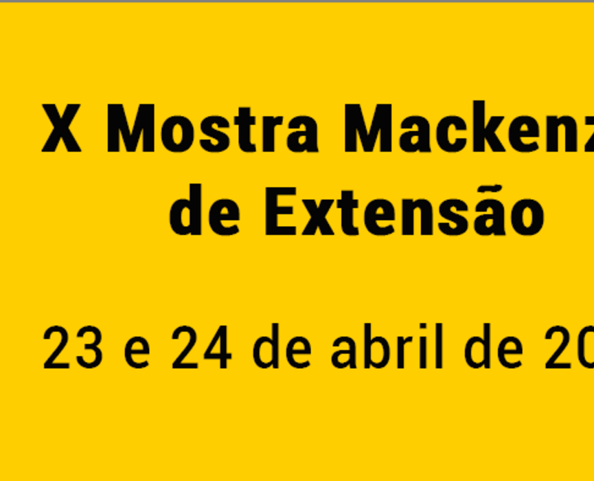 Nos dias 23 e 24 de abril, a Universidade Presbiteriana Mackenzie (UPM) realizará a X Mostra Mackenzie de Extensão no campus Higienópolis. O evento reunirá projetos extensionistas em andamento desenvolvidos por todas as unidades da UPM.