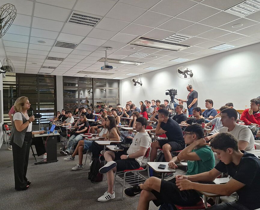 O evento foi bem descontraído, com intensa participação e interação dos alunos. Ao final, os convidados realizaram um simulado de entrevista real com 8 alunos, em grupo, um momento de prática que agregou muito para os participantes.