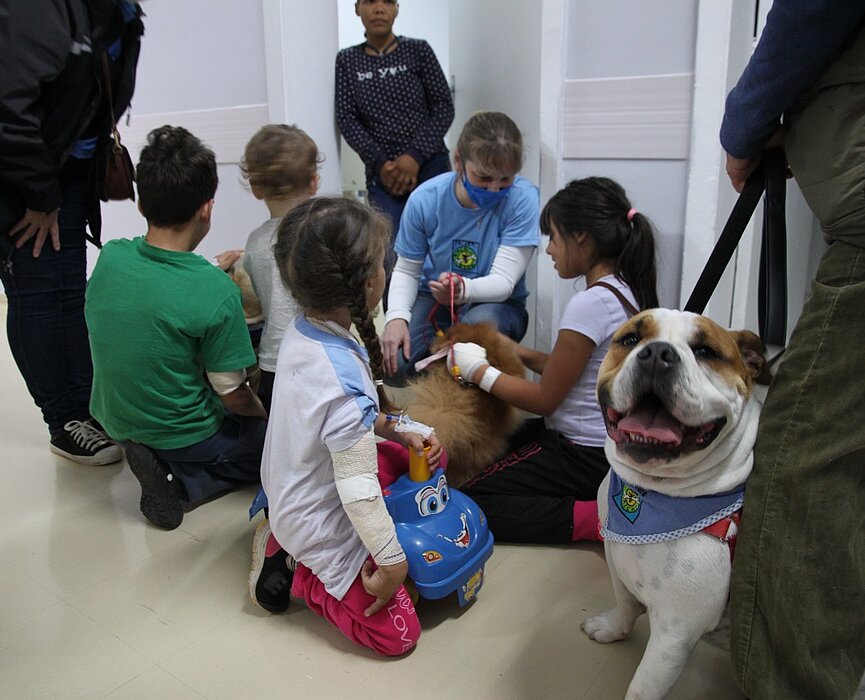 Os estímulos provocados pela interação com os cães auxiliam no acolhimento dos pacientes pediátricos, o que diminui os impactos da hospitalização. As visitas deixam o ambiente hospitalar mais descontraído e facilitam a comunicação dos colaboradores do Hospital com os pacientes e familiares.