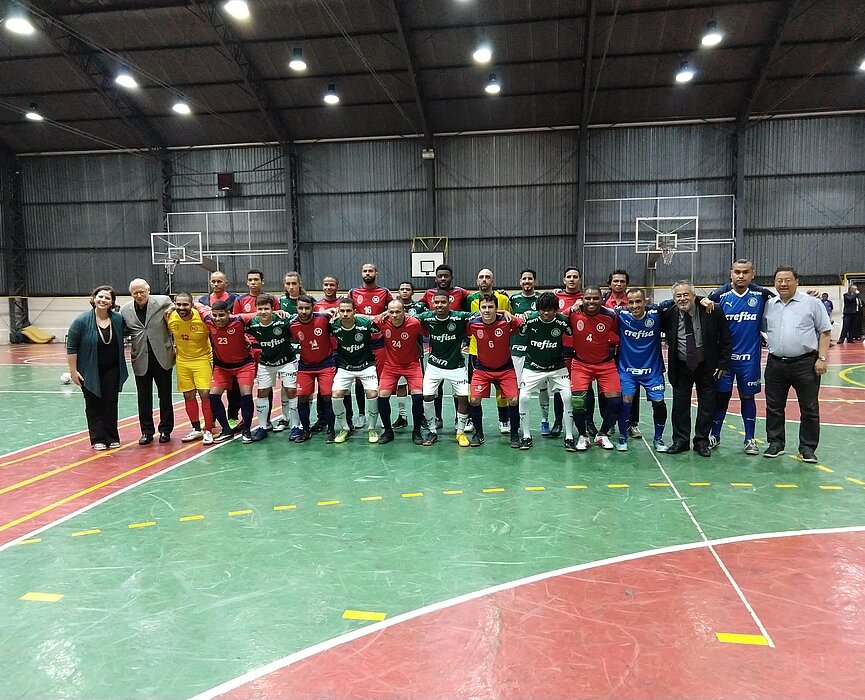 O time formado por colaboradores do Instituto Presbiteriano Mackenzie (IPM) jogou partida amistosa nesta quinta-feira, 19 de dezembro, contra o Palmeiras, no prédio 48 dos campus Higienópolis. O duelo de futsal, que marcou o encerramento da competição interna entre os funcionários do IPM, terminou 2 a 1 para o Mackenzie. A vitória veio nos minutos finais e a partida foi bastante disputada.