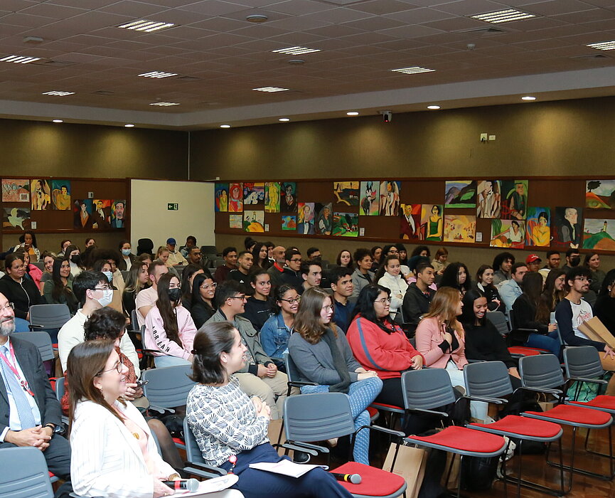 Olhos brilhando na recepção de 300 novos alunos prounistas na Universidade Presbiteriana Mackenzie (UPM). Com muito orgulho e afeto, o reitor Marco Tullio de Castro Vasconcelos fez uma recepção especial para reafirmar o compromisso social da Instituição em acolher os estudantes bolsistas. A atividade ocorreu no auditório Escola Americana, campus Higienópolis, na noite do dia 08 de setembro.