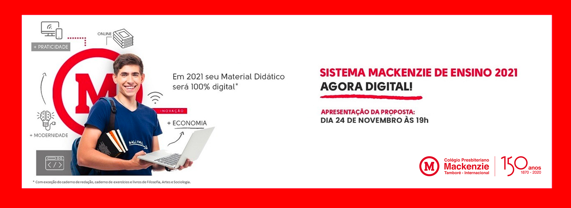 Os Colégios Presbiterianos Mackenzie preparam-se para a implantação do novo ensino médio. E uma etapa de grande importância, nesse processo, é a adaptação do material didático à nova realidade. Hoje, às 19h, as equipes de Brasília e Tamboré, em parceria com o Sistema Mackenzie de Ensino, apresentarão o SME em formato digital, a ser usado pelos estudantes da 1ª série em 2021.