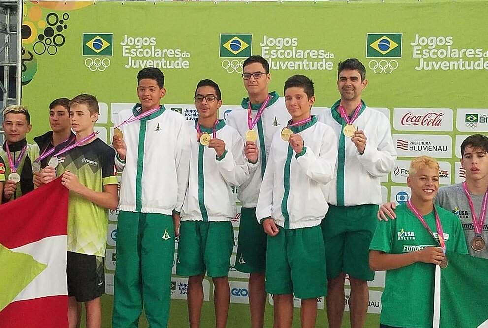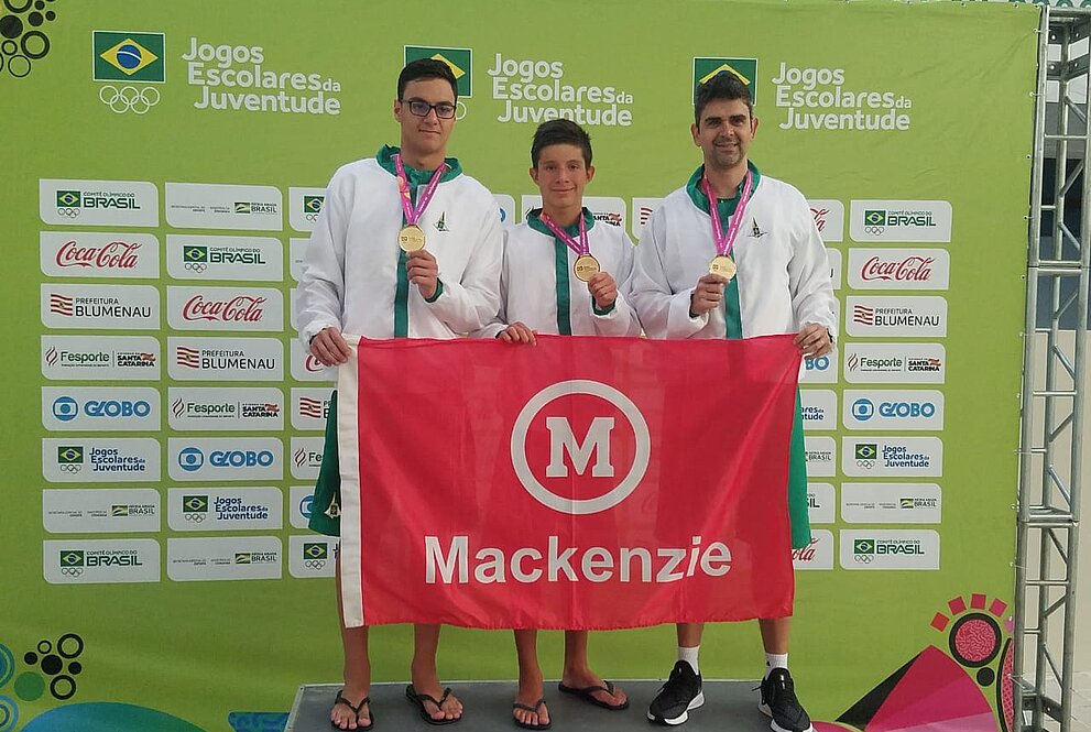 Após a participação triunfal nos Jogos Escolares do Distrito Federal (JEDF), ganhando todas as (categorias) da competição, em setembro, a equipe de Natação do Mackenzie Brasília, treinada pelo professor de Educação Física do Colégio Presbiteriano Mackenzie Brasília (CPMB), Renato Dourado, esteve em Blumenau (SC), entre os dias 26 a 30 de novembro, para a conquista de novos pódios, dessa vez nos Jogos Escolares Brasileiros (JEBs). Ao todo, o time, formado por Gabriel Fayad (14), Lucas Marcondeli (14), Alice Vitor (13) e Rafaela Gebrim (17), retornou à Capital Federal com seis das 10 medalhas conquistadas pelos nadadores de Brasília na competição, além de outros resultados igualmente importantes nos Jogos.