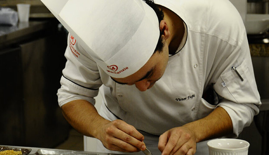 No Mackenzie os alunos concluintes no primeiro semestre de 2016, além do relatório, produziram um menu harmonizado oferecido a uma banca formada por dez renomados profissionais da área. A combinação de técnica, sabores, cores, aromas e design, tão discutidas durante o curso, se fez presente em uma sequência de pratos inspirados na Gastronomia Paulistana, que une a "cozinha dos bandeirantes", formada pela fusão de influências portuguesas a ingredientes indígenas, seguida dos produtos, técnicas e receitas trazidas por seus principais imigrantes a partir da segunda metade do século XIX.