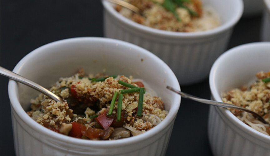 Como em Gastronomia tudo acaba em comida, na segunda parte da avaliação os alunos precisaram desenvolver um coquetel de lançamento do aplicativo, que contou com avaliação de profissionais da área. No menu estiveram itens que passeavam por todos os temas listados no Guia, iniciando com um gaspacho, feito com tomate orgânico, seguido por preparações como ceviche, espaguete vegano, purê de inhame com ragu de ossobuco, dentre outras receitas que estão disponíveis no aplicativo. A identidade visual do evento foi elaborada pela Empresa Júnior de Design Mackenzie.