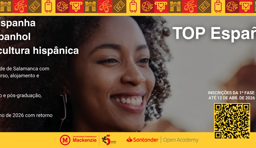 Estudantes da Universidade Presbiteriana Mackenzie (UPM) têm a oportunidade de participar de uma experiência internacional gratuita por meio do programa Santander Top España 2026. A iniciativa é promovida pelo Santander Open Academy, em parceria com a universidade, e concederá duas bolsas de estudo integrais para uma imersão cultural e linguística na Universidad de Salamanca, na Espanha.