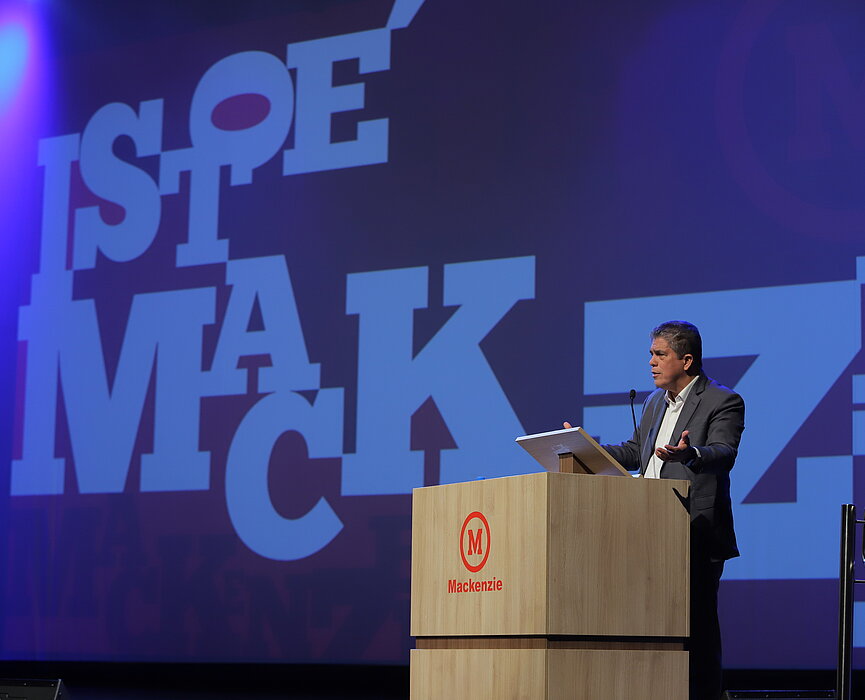 Em seguida, o presidente do Instituto Presbiteriano Mackenzie (IPM), Milton Flávio Moura, subiu ao palco e, em sua fala, reforçou a força da comunhão. "Vivemos muitos momentos desafiadores aqui na instituição. Digo isso porque enfrentamos essa realidade no dia a dia, especialmente nos momentos difíceis. É nesses momentos que percebemos o quanto Deus tem feito por nós, abençoando a vida de vocês e dando-lhes capacidade."