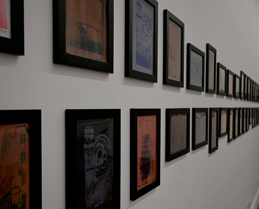 A exposição também materializa as reflexões da pesquisa da artista sobre poéticas visuais e deslocamentos. “Busquei conscientemente uma técnica que ao mesmo tempo fosse fotográfica e retratasse o local, mas que não tivesse a precisão da fotografia. Queria essa coisa meio suja, meio manchada, com pouca nitidez, fui procurando um caminho digital e não gostei do resultado, e aí resolvi tentar a gravura. Foi um caminho de experimentação, de tentativa e erro, até que descobri essa técnica”, detalha Carolina Vigna.