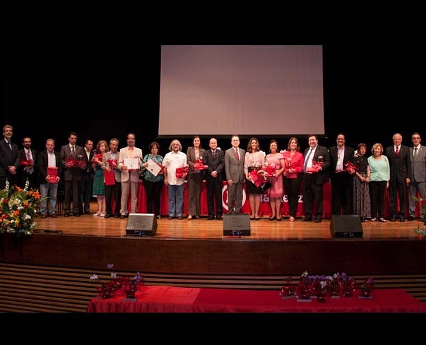 Na foto: Os professores premiados e as autoridades do Instituto e da Universidade.