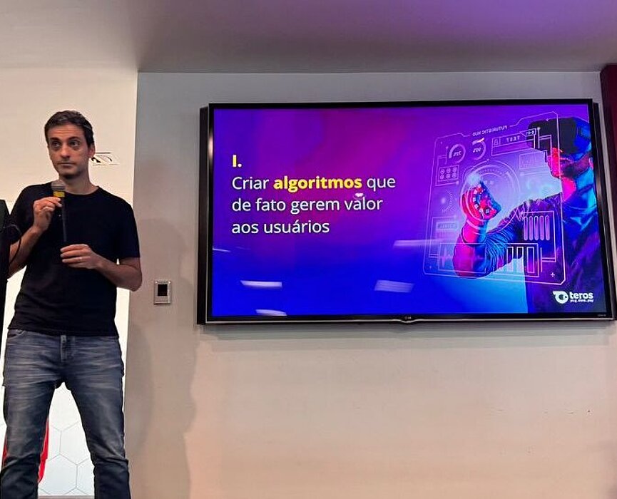 Juan Ferrés, CEO da Teros, e Lígia Novazzi, COO da Teros, compartilharam suas experiências e insights sobre os principais projetos e tendências do Mundo Open durante a palestra "Desbravando o Mundo Open". Essa apresentação proporcionou uma visão aprofundada de como o Mundo Open está impactando a tecnologia, oferecendo aos participantes uma compreensão mais clara das oportunidades disponíveis.