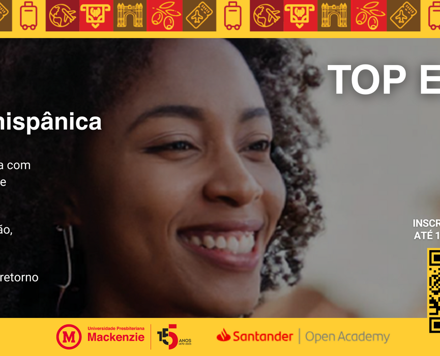 Estudantes da Universidade Presbiteriana Mackenzie (UPM) têm a oportunidade de participar de uma experiência internacional gratuita por meio do programa Santander Top España 2026. A iniciativa é promovida pelo Santander Open Academy, em parceria com a universidade, e concederá duas bolsas de estudo integrais para uma imersão cultural e linguística na Universidad de Salamanca, na Espanha.