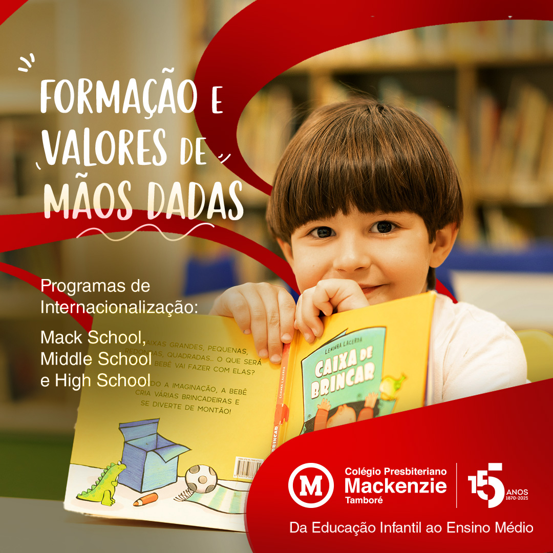 Educação Infantil Saiba Mais Fundamental I Saiba Mais Fundamental II Saiba Mais Ensino Médio Saiba Mais Mack School Saiba Mais Middle School Saiba Mais High Shool Saiba Mais Notícias: DestaquesColégio TamboréColégios MackenzieMackenzie Tamboré recebe Moção de Congratulação na Câmara Municipal de Barueri 13.11.2025 Colégio Mackenzie Tamboré abre matrículas para o ano letivo de 2026 06.10.2025 Colégio Presbiteriano Mackenzie Tamboré realiza momento de reflexão entre escola e famíliaEventos 15.09.2025 Campeonato de Cheerleaders do Colégio Mackenzie Tamboré une técnica e criatividade 22.07.2025 Colégio Presbiteriano Mackenzie Tamboré promove ação solidária com foco nos refugiados 11.06.2025 Colégio Mackenzie Tamboré celebra 25ª edição da Festa em Família 09.06.2025 Colégio Mackenzie Tamboré promoveu projeto para o Dia Mundial do Meio Ambiente 06.06.2025 Mackenzie Tamboré conquista 96 medalhas em Olimpíada de Matemática 06.06.2025 Dia do Biólogo: Pedro Cristales fala de sua conexão com a naturezaPara Sempre Mackenzista 03.09.2024 XVII Encontro de Educação Mackenzie: o futuro começa agoraEventos 22.08.2024 Veja mais ...Pré-inscrição Mack Esporte 16.01.2026 Lista de Material 2026 16.10.2025 Edital de Matrícula - 2026 29.09.2025 Colégio Mackenzie Tamboré celebra 25ª edição da Festa em Família 09.06.2025 Comunicado - 25ª Festa em Família - 2º ao 5º ano 09.05.2025 MackTech 2025 07.04.2025 Feira de Livros 2025 25.03.2025 Momento de Reflexão 2025 14.03.2025 Matrícula Mack Esporte - Tutorial 10.02.2025 eduCONNECT e Portal do Aluno 03.02.2025 Veja mais ...Aluno do Mackenzie Agnes disputará o Campeonato Brasileiro de Hóquei sobre Patins 05.03.2026 Sem telas! Um ano da lei que proíbe celulares nas escolas 12.02.2026 Mackenzie Agnes inicia ano letivo de 2026 em parceria com as famílias 27.01.2026 Mackenzie Agnes destaca o papel essencial da ludicidade na formação pedagógica e social 14.01.2026 Colégio Mackenzie SP se destaca em Concurso Internacional de Artes Visuais 17.12.2025 Mackenzie conquista o pódio no Global Trade Challenge e consolida liderança nacional 16.12.2025 Colégio Mackenzie Agnes apresenta musical de Natal 16.12.2025 Corais do Mackenzie celebram o Natal com apresentações no Shopping Pátio Higienópolis 11.12.2025 Alunos do CPM Agnes lançam livros autorais em inglês na edição 2025 do “Growing Up” 11.12.2025 CPM Agnes promove atividade de educação financeira com visita à livraria 26.11.2025 Veja mais ... Conheça o Colégio Mackenzie Tamboré