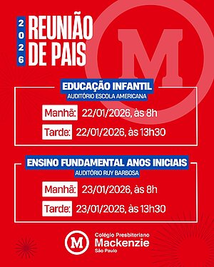 Reunião de Pais e Início das Aulas 20262025-12-162025-12-16 Comunicação - Marketing Mackenzie REUNIÃO DE PAIS 2026 INÍCIO DAS AULAS 2026