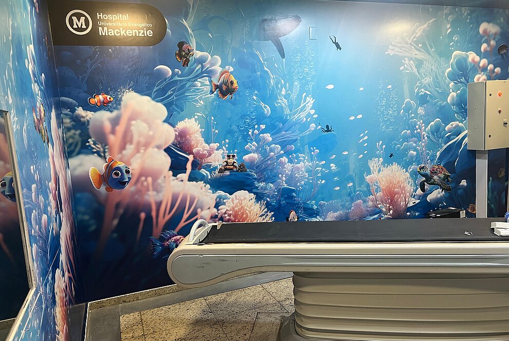O Hospital Universitário Evangélico Mackenzie (HUEM) inaugurou mais uma sala temática de tomografia computadorizada, desta vez inspirada no fundo do mar. A iniciativa faz parte do trabalho contínuo do Serviço de Apoio Diagnóstico e Terapêutico (SADT) para humanizar o ambiente hospitalar e reduzir o estresse dos pacientes durante os exames.