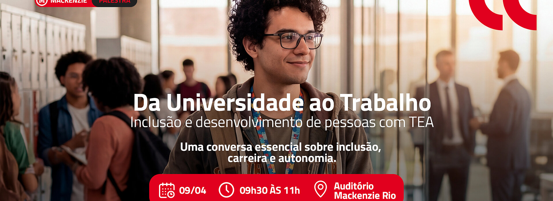 A Faculdade Presbiteriana Mackenzie (FPM) Rio realiza, nesta quinta-feira, 9 de abril, a partir das 9h30, a palestra “Da Universidade ao Trabalho – Inclusão e desenvolvimento de pessoas com TEA (Transtorno do Espectro Autista)”. O encontro propõe uma reflexão essencial sobre inclusão, carreira e autonomia, reunindo discussões relevantes para estudantes, profissionais e a sociedade em geral.