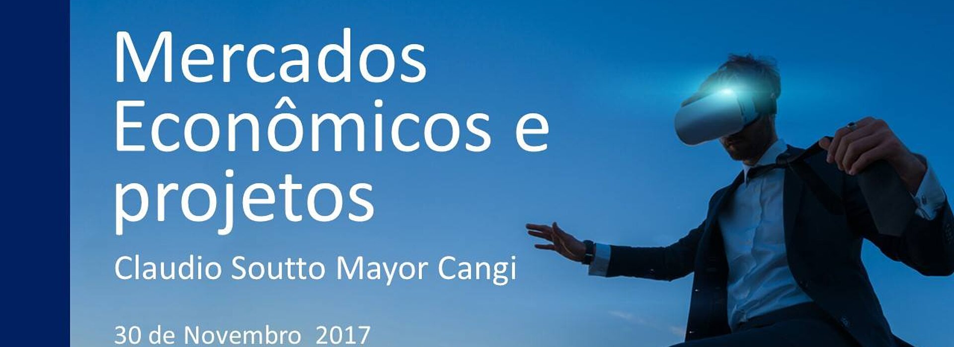 The Mackenzie Center for Economic Freedom and the Professional Master in Economics and Markets invite to the Workshop: "Economic Markets and Projects", to be taught by Claudio Soutto Mayor Cangi, Master in Finance and Partner of KPMG responsible for technology consulting in Latin America with a vast experience in Project Management, to be held on November 30, 2017, starting at 7:50 pm, in Room 201 of Ed. João Calvino.