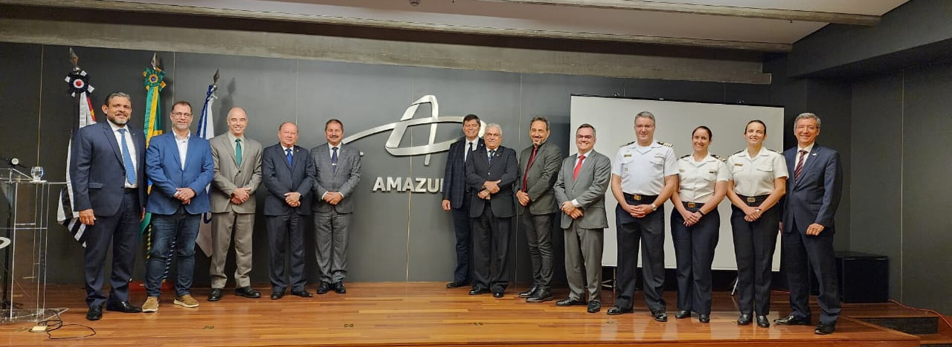 On June 27, 2023, the president of the Mackenzie Presbyterian Institute, Dr. Milton Flávio Moura accompanied by the direction of MackGraphe, composed by its General Director, Prof. doctor Benedito Guimarães de Aguiar Neto, Dr. Marcos Eberlin (RD&I Manager) and Dr. Marcelo Silva Oliveira (Project Manager), visited AMAZUL -Amazônia Azul Tecnologias de Defesa S.A, at its headquarters in São Paulo.