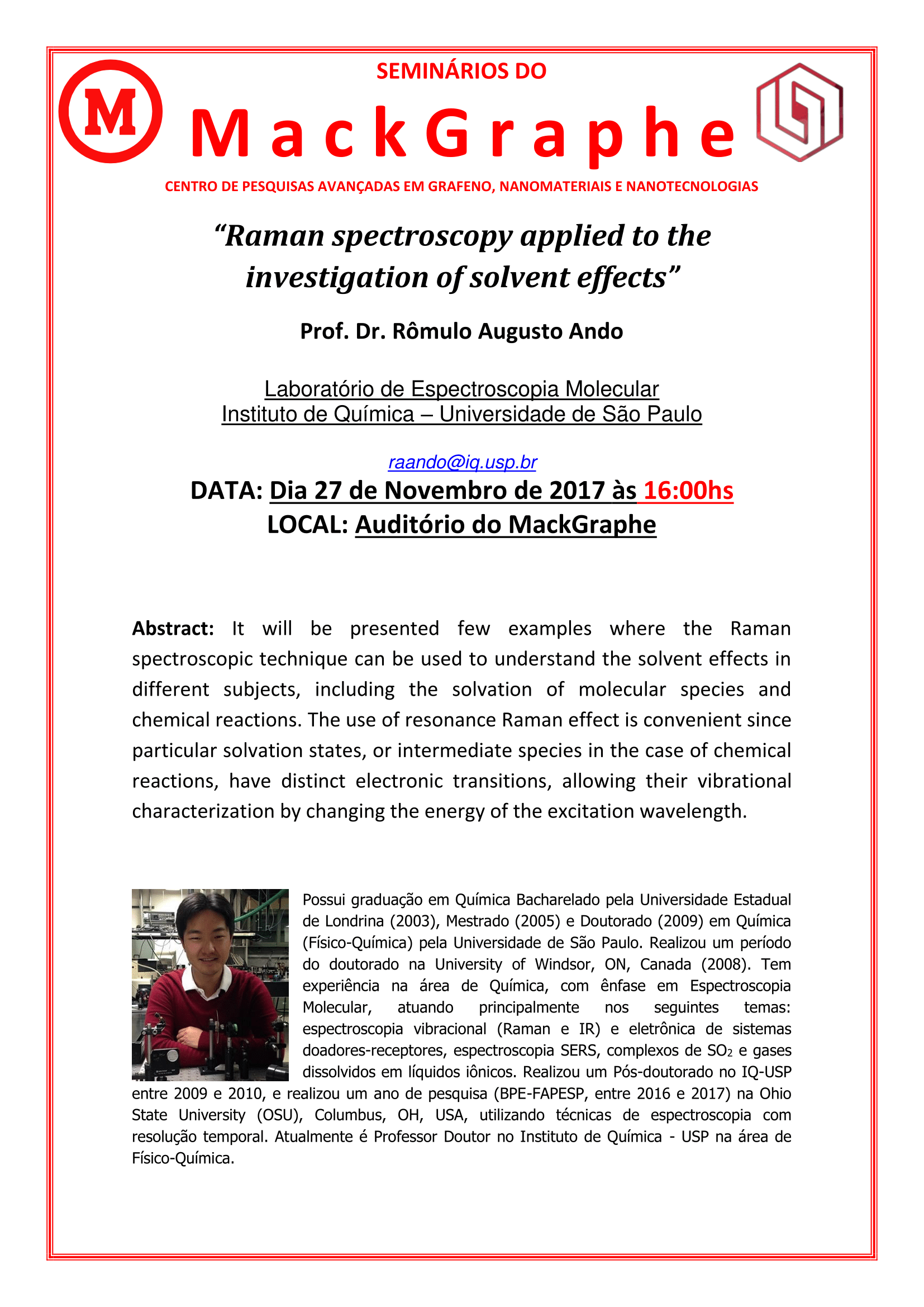 27/11/2017 - Prof. Dr. Rômulo Augusto Ando - “Raman spectroscopy applied to the investigation of solvent effects”