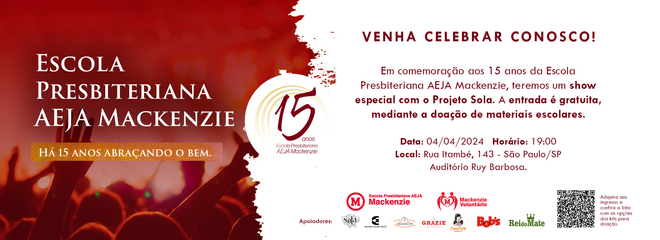 Não perca a celebração de 15 anos da Escola Presbiteriana AEJA Mackenzie