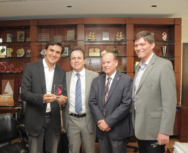Gabriel Chalita, professor da Faculdade de Direito do Mackenzie e também Deputado Federal, foi recebido pelo presidente do Mackenzie, Maurício Melo de Meneses, pelo reitor da universidade, Benedito Guimarães Aguiar Neto e pelo membro do Conselho Deliberativo, Milton Flávio Moura.