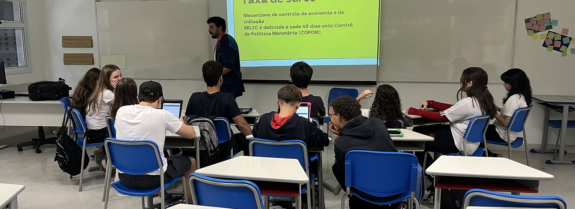 Nessa etapa, os estudantes passam a explorar o papel do Banco Central, o funcionamento da Bolsa de Valores e os impactos da taxa Selic na economia. Além disso, também é desenvolvido uma visão mais ampla do mercado, abordando os produtos de renda fixa e variável.