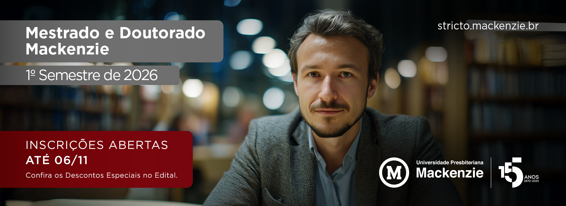 A Universidade Presbiteriana Mackenzie (UPM) está com inscrições abertas para o processo seletivo da Pós-Graduação Stricto Sensu 2026.1, que oferece 14 programas de mestrado e doutorado, nas modalidades acadêmica e profissional. As inscrições podem ser realizadas até o dia 6 de novembro.